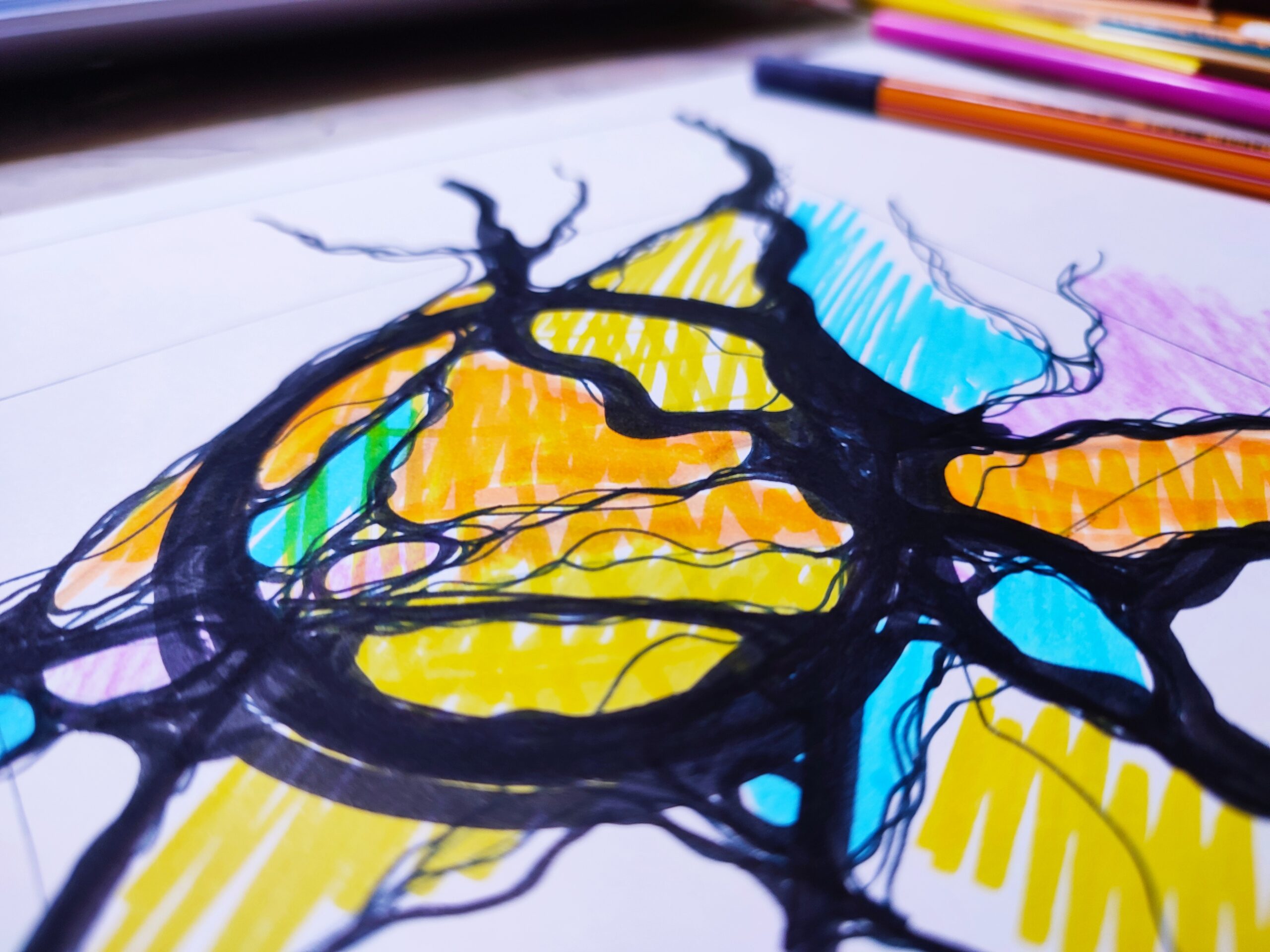 NeuroArt ist eine Spielart der Neurographik dh. sie enthält Elemente aus der Ursprungsform, ist aber vollkommen frei in ihrer Vollendung.